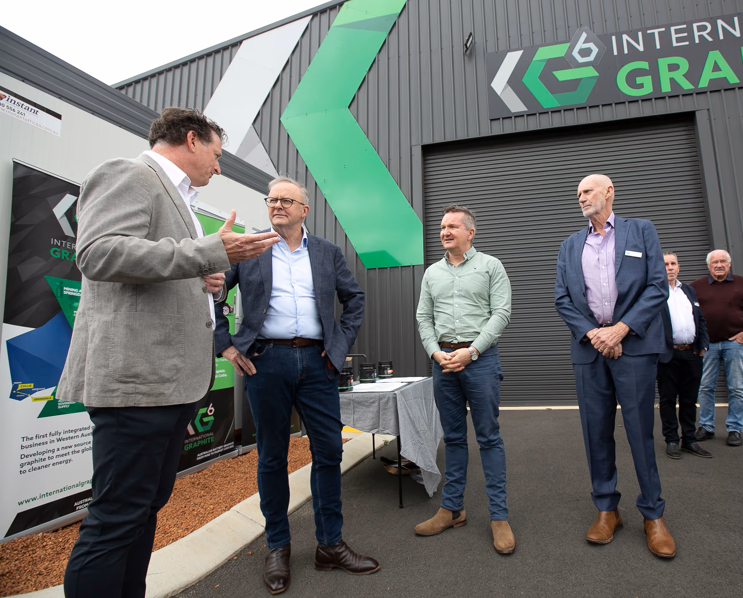 Our first graphite processing facility opened in Collie, Western Australia, in 2022. It was officially inaugurated by Australian Prime Minister Anthony Albanese and has attracted significant financial support from Australian national and state governments. The original pilot plant has been progressively expanded and is currently producing micronised and spheroidised product for customer qualification and testing.